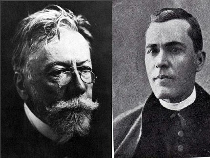 Àngel Guimerà, esquerra i Jacint Verdaguer, dreta