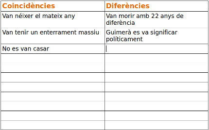 A partir d’això crea una taula amb els dos escriptors amb les seves semblances i diferències. Segueix, si vols, l’exemple: