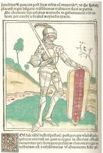 Peu: El cavaller János Hunyadi. Gravat de Johannes de Thurocz, Crònica dels hongaresos (1488)