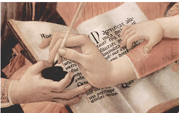Peu: Escriptura Madonna del Magnificat (fragment), de Sandro Botticelli