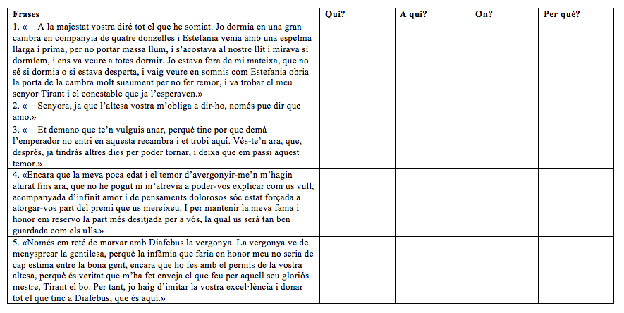 Heu estat ben atents a la lectura? Teniu bona memòria? Us proposem que, en parelles, identifiqueu qui va dir què, a qui, on i per què… sense mirar el llibre, és clar!